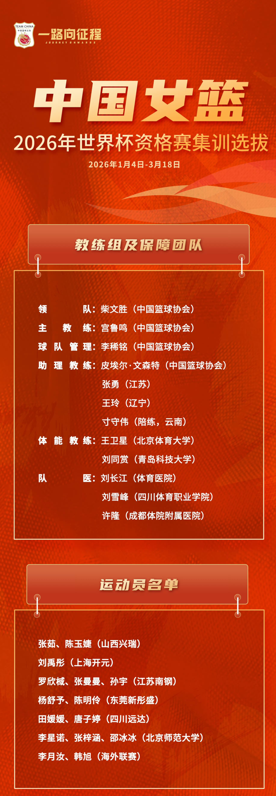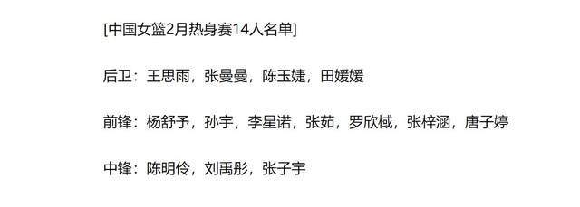 而随着联赛结束,国家队的名单做了微调,邵冰冰以及在海外的李月汝、韩旭没有入选。王思雨、张子宇两位山东籍球员重新入选。名单如下: